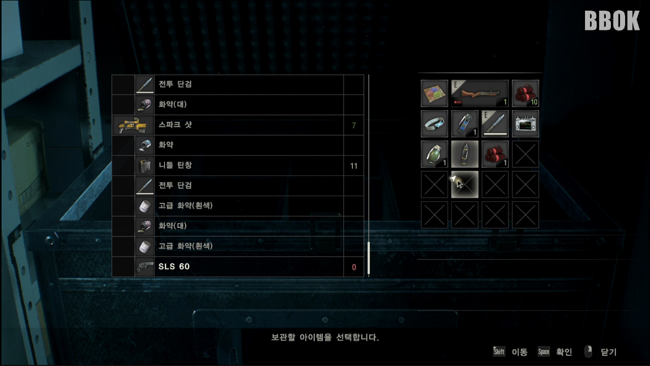 1번에 "고급 화약(흰색)"이 있으니 챙기고 앞쪽에 한놈을 더 처리합니다.
