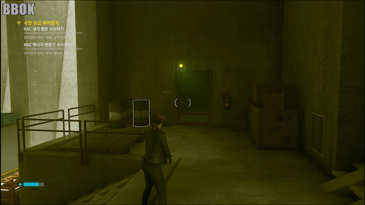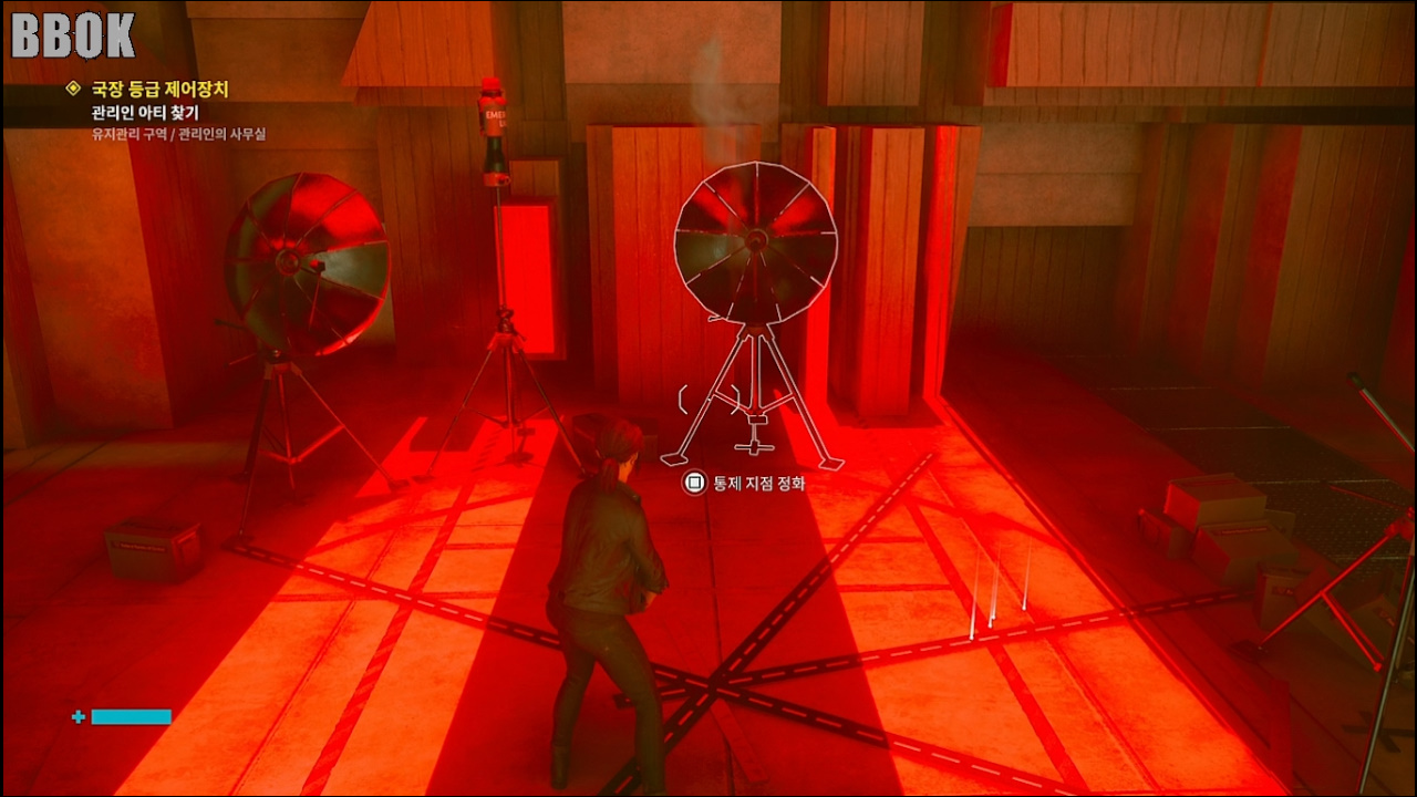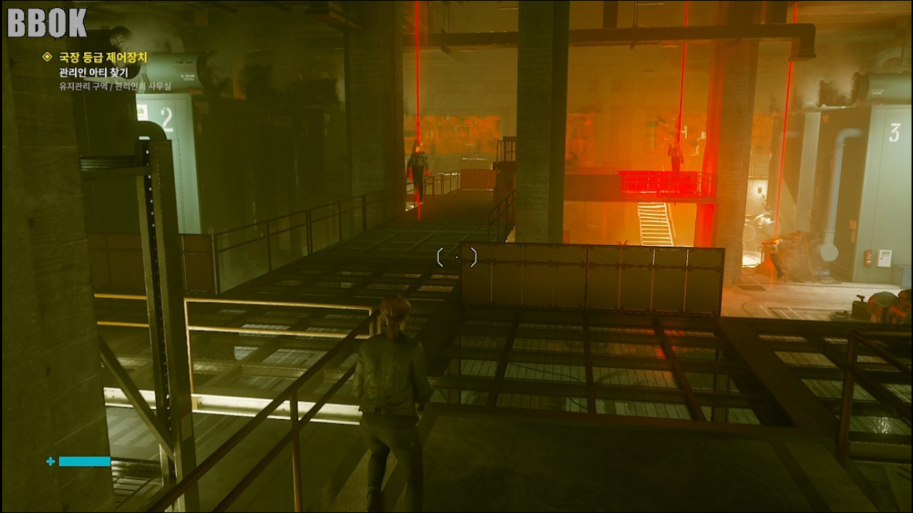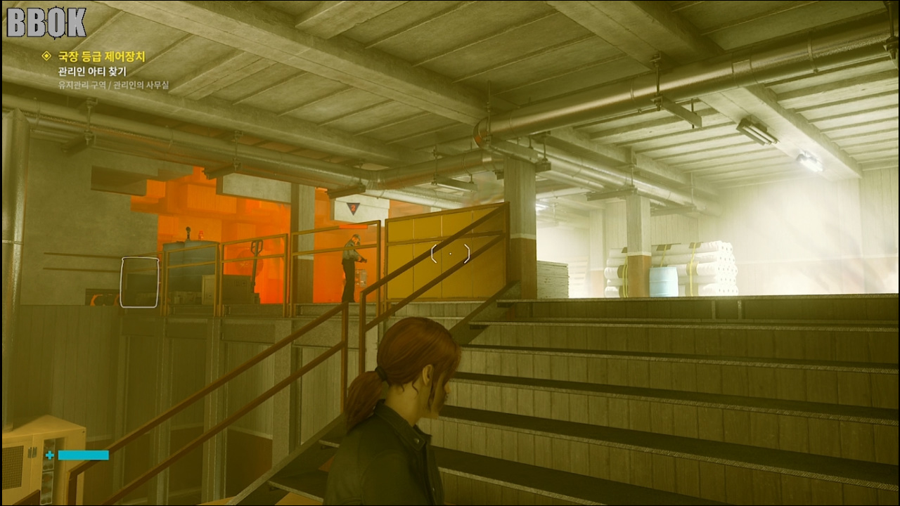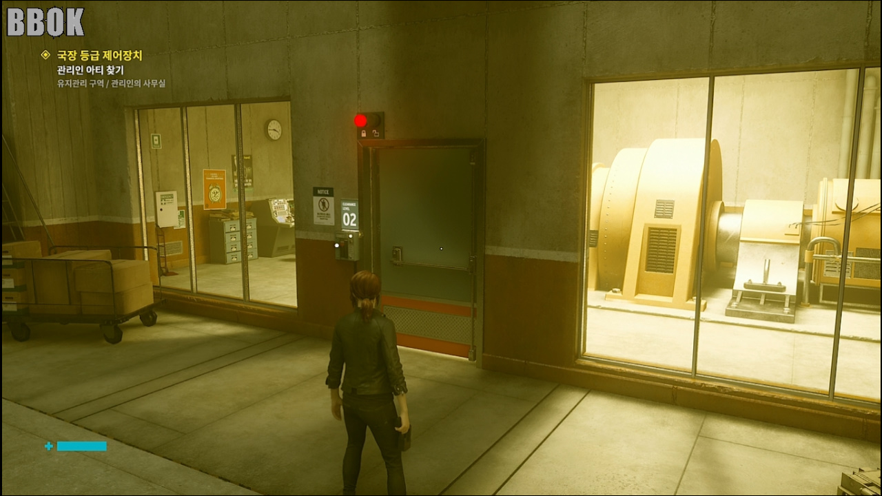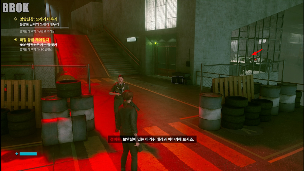 방을 나와서 계단을 올라가면 통제 지점이 있습니다.