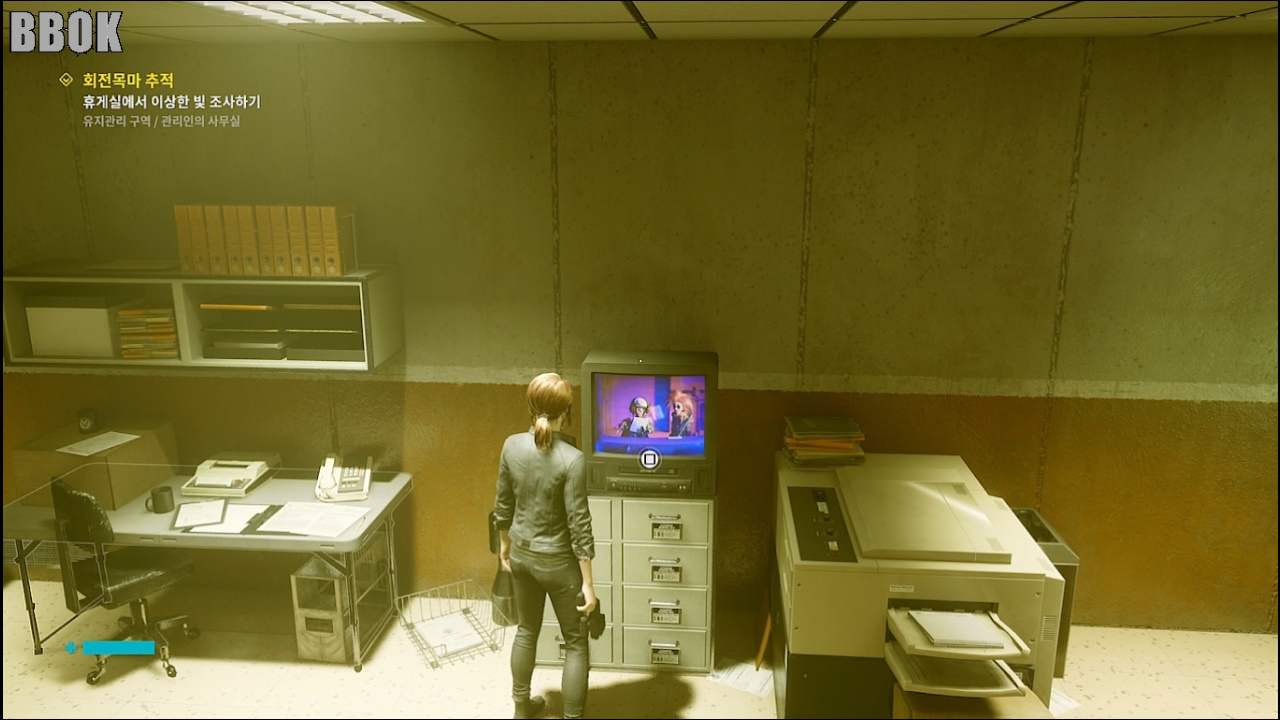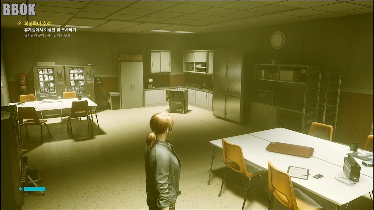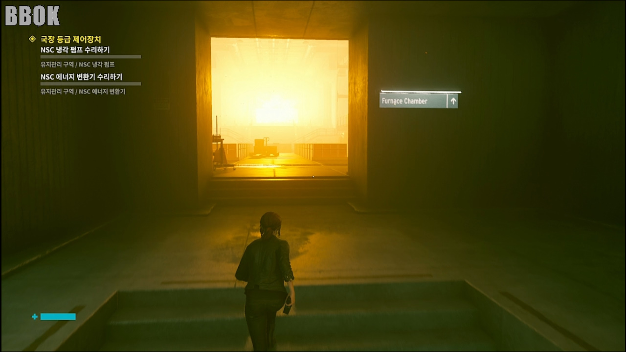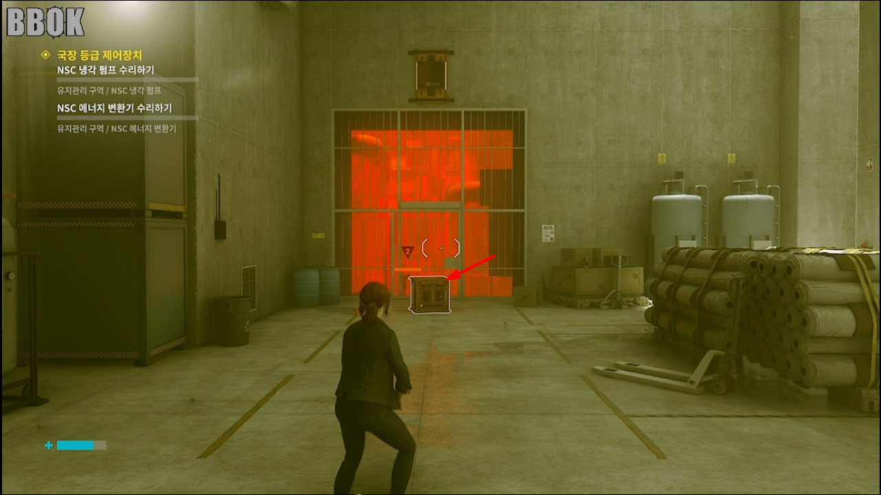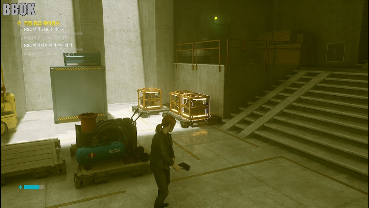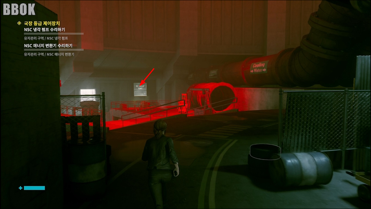 방을 나와서 계단을 올라가면 통제 지점이 있습니다.