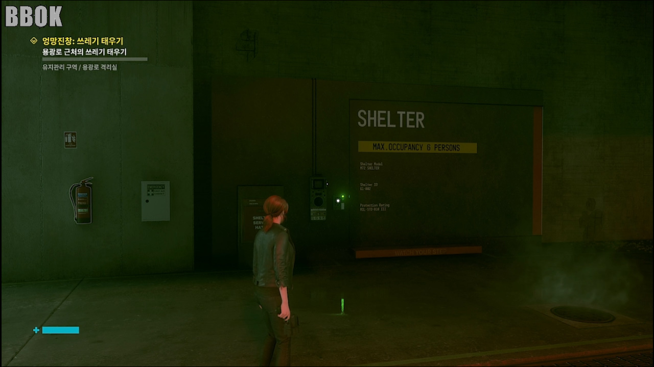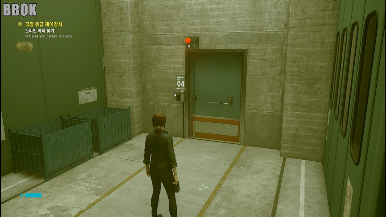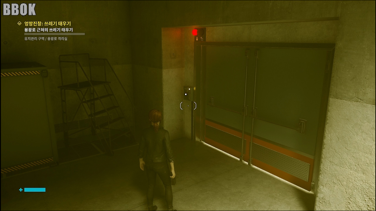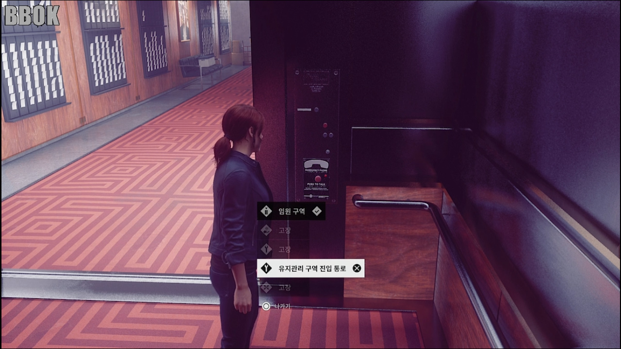 엘리베이터를 조작해서 "유지관리 구역 진입 통로"로 갑니다.