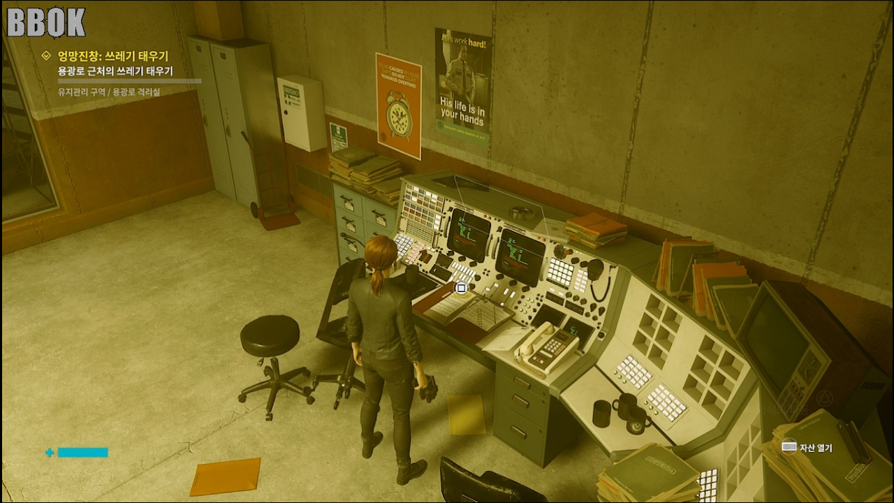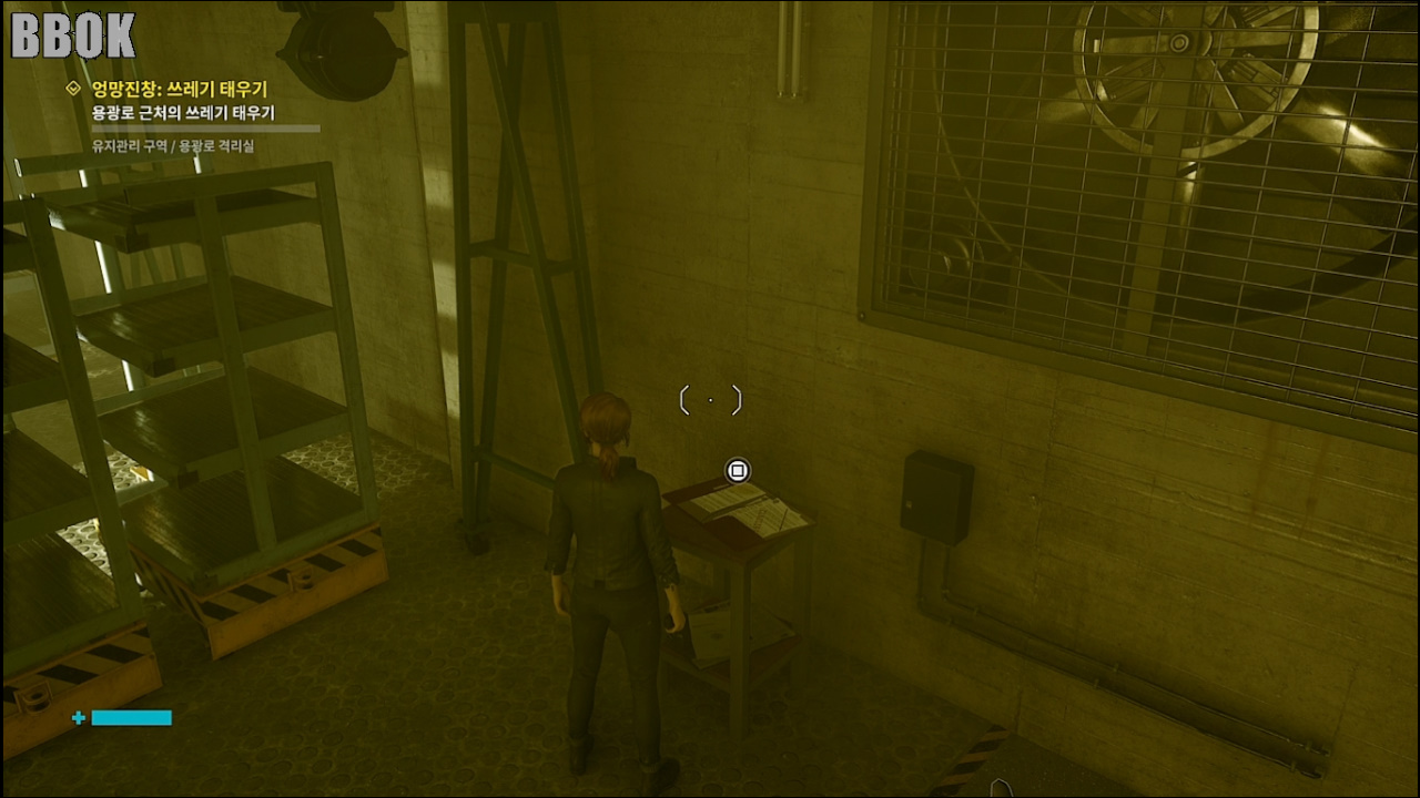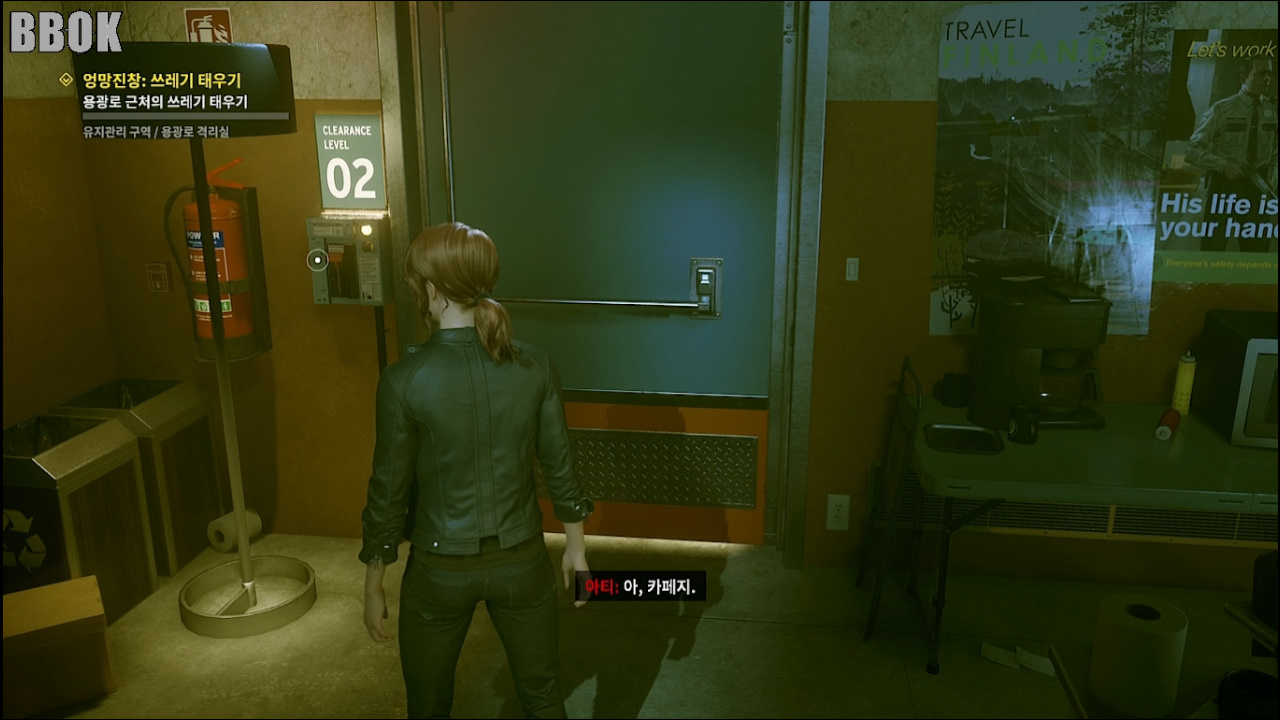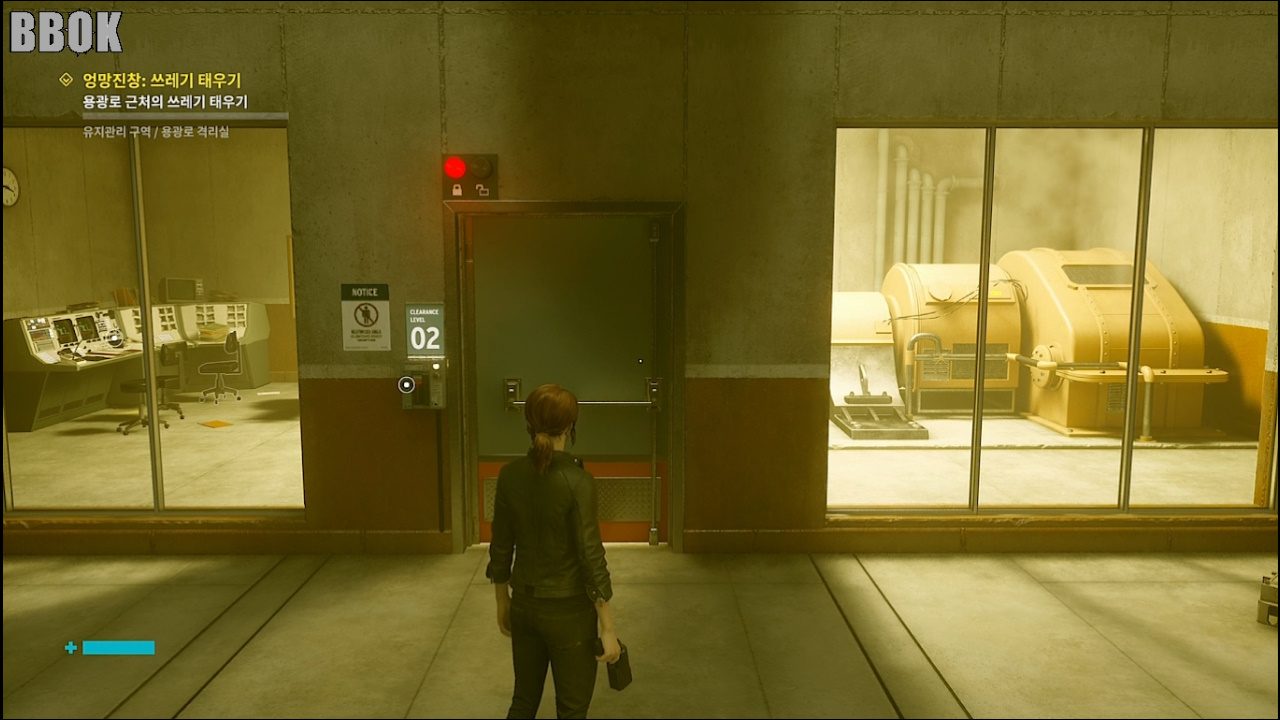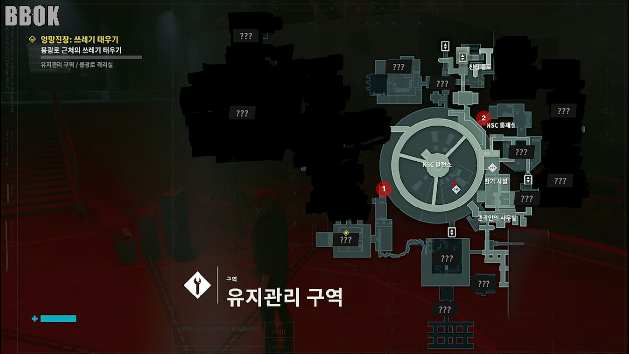 엘리베이터를 조작해서 "유지관리 구역 진입 통로"로 갑니다.
