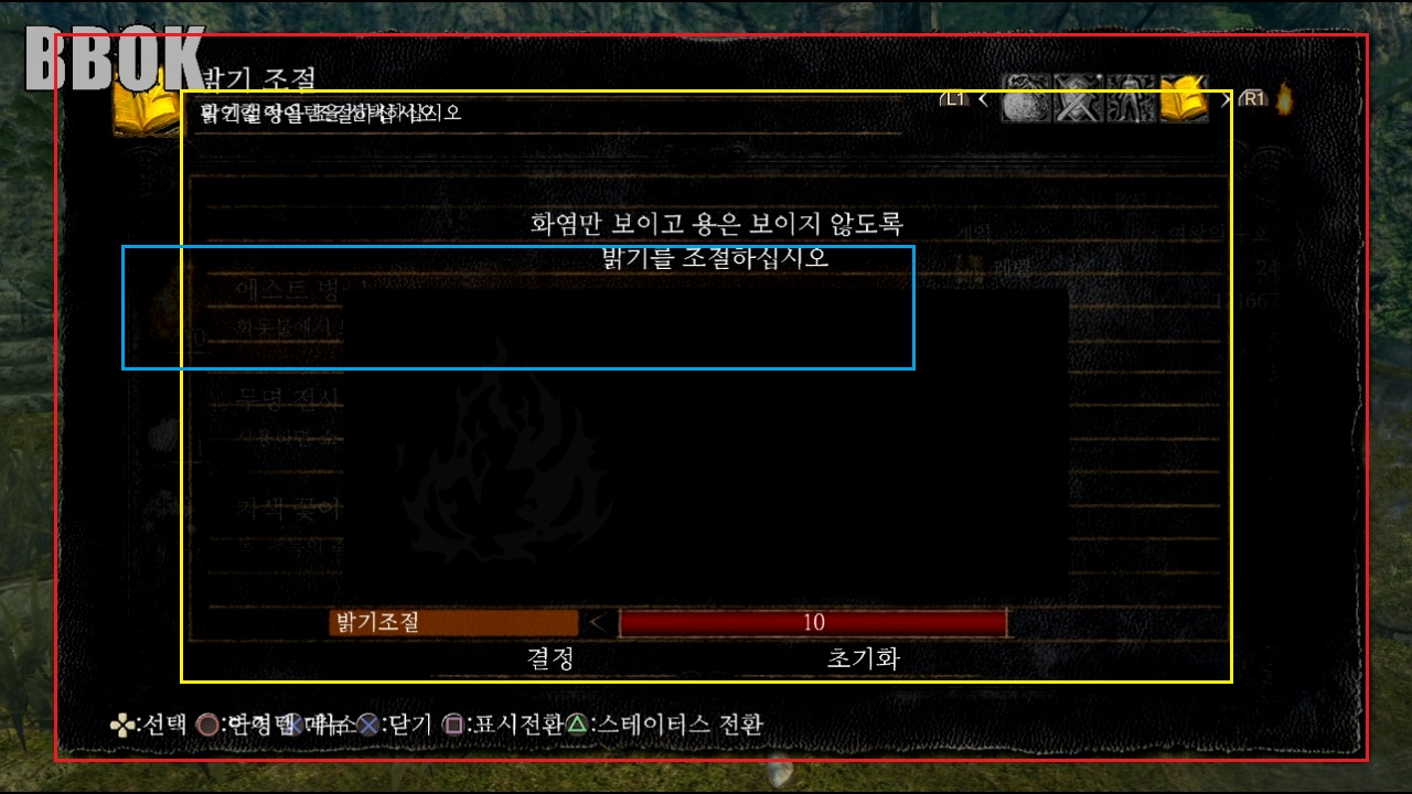 그러면 사진처럼 아이템 창과 밝기 조절 창(빨간 창과 노란 창)이 동시에 뜨게 됩니다.