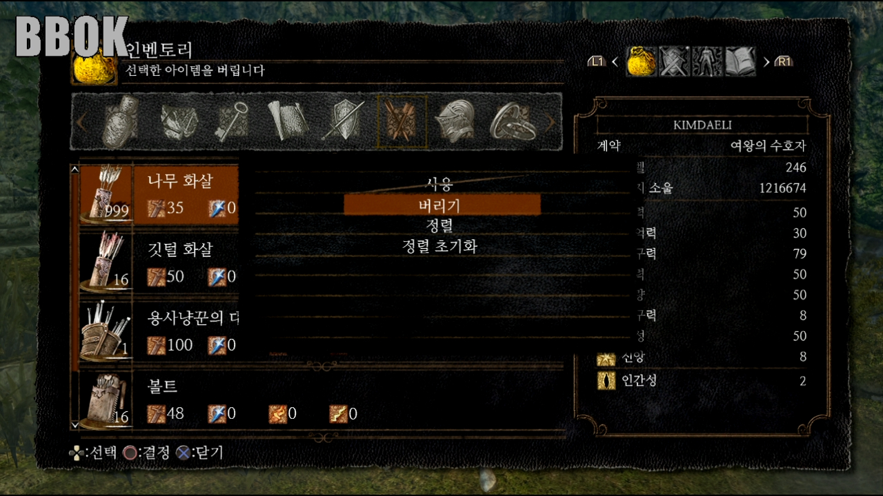 999개가 있는 화살을 선택하고 버리기를 선택합니다.