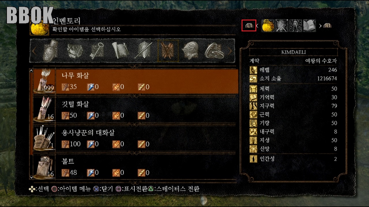 십자 버튼 아래를 한번 누르면 소울이 선택됩니다.