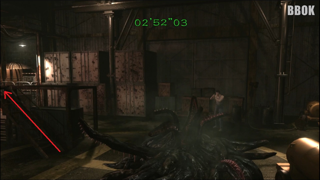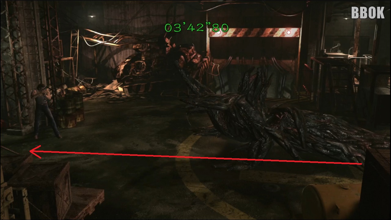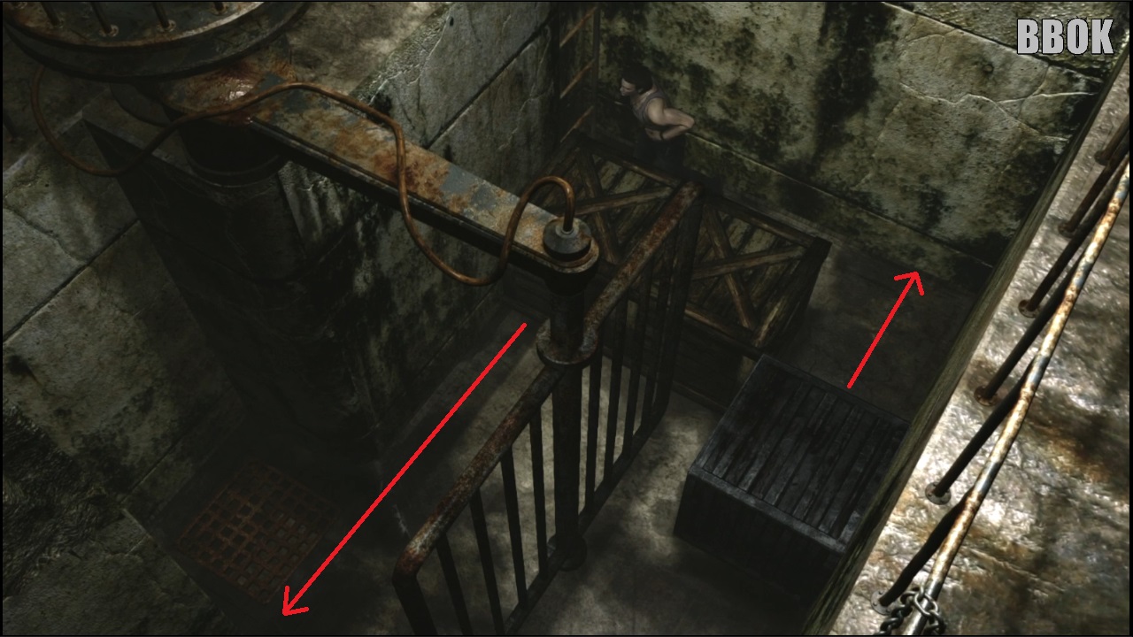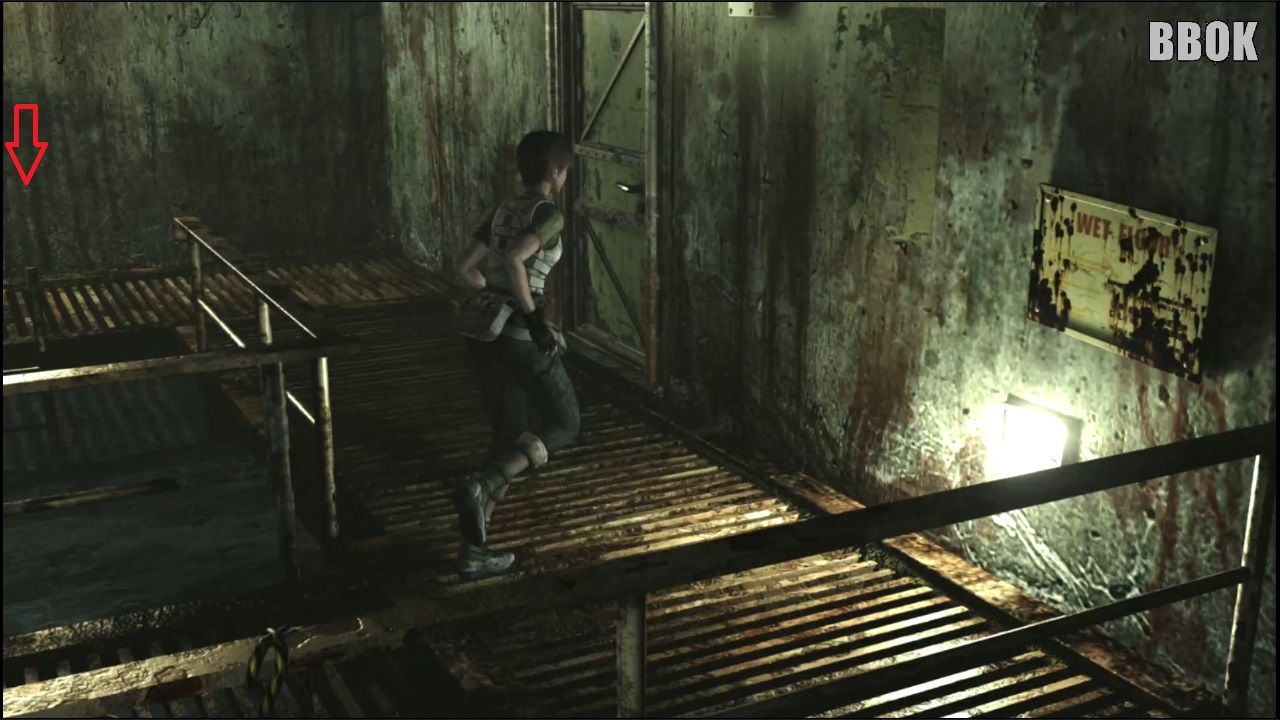 사진의 방에 오면 왼쪽 구석에 실험체가 두 마리 있지만 우선은 오른쪽 아래로 진행합니다.
