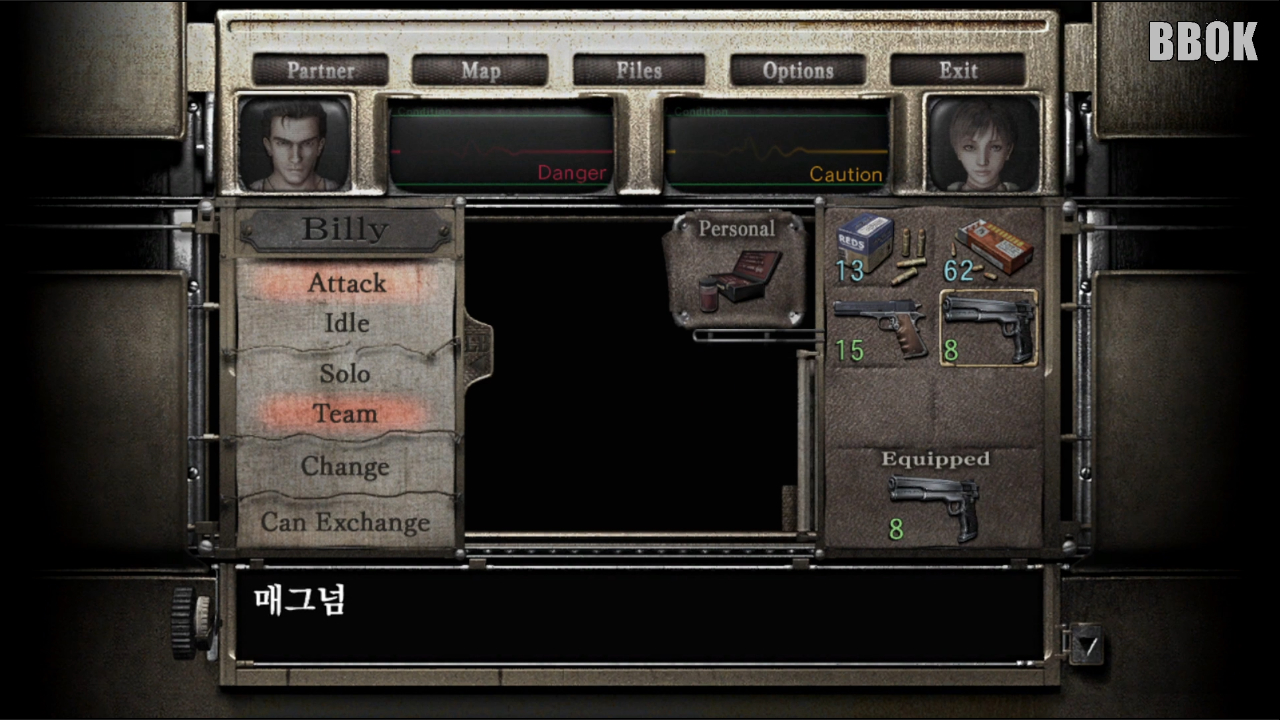 내려가면 "빌리"는 "샷건"을 "레베카"는 "매그넘"을 들어줍니다.