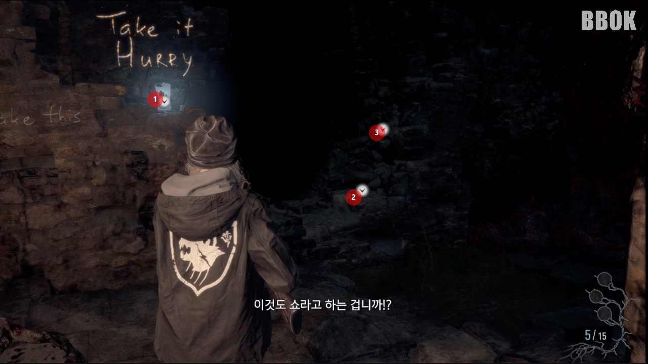 처리하려고 하면 적이 등장하니 "산탄총"으로 처리하고 제거합니다.