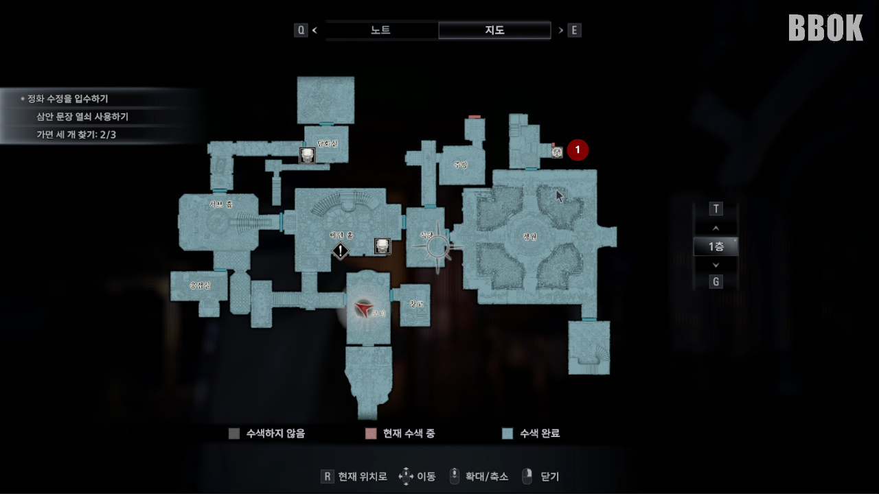 로비로 돌아와 1번으로 진행 복도에서 왼쪽으로 진행합니다.