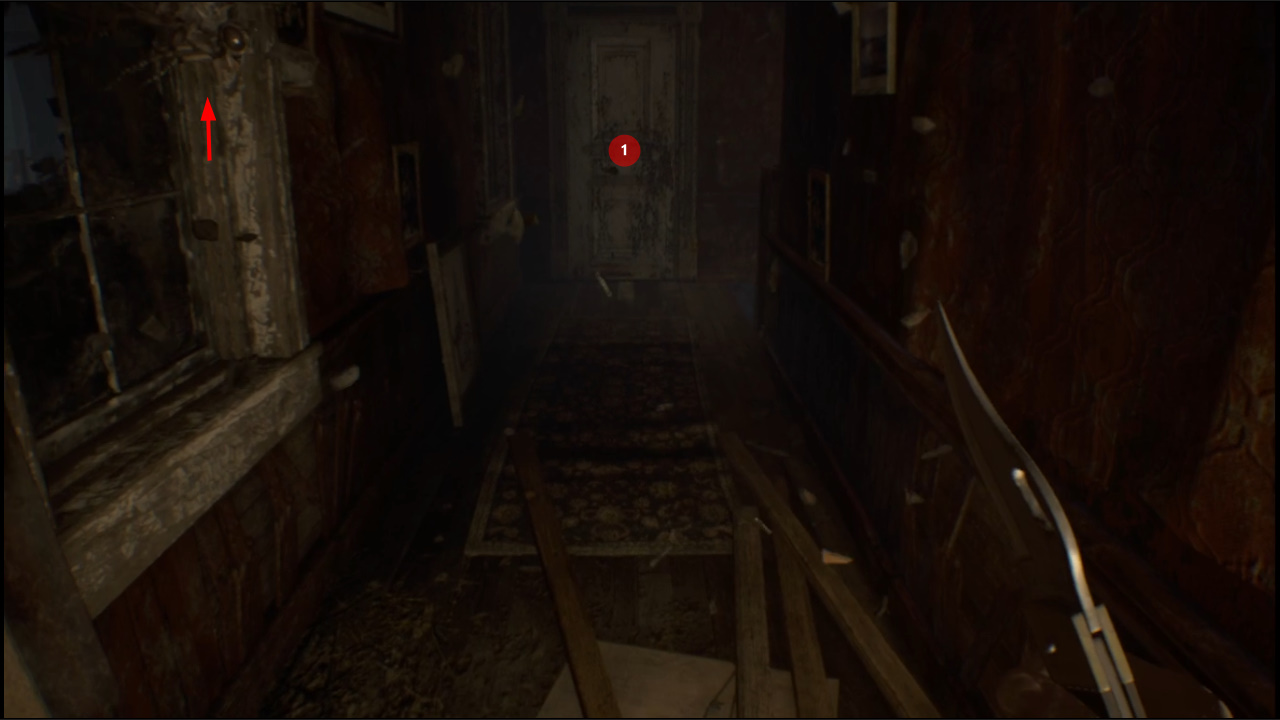우선 머리를 문에 달아두고 2층으로 올라갑니다.