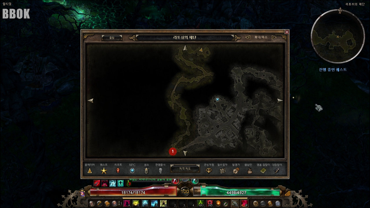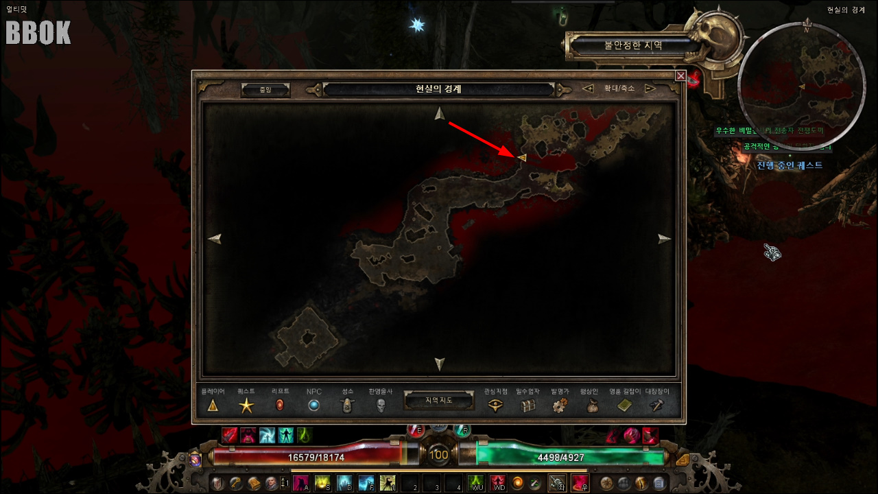 "어둠숲 은닉처" 퀘스트 완료 장소에서 화살표 방향으로 내려가면~