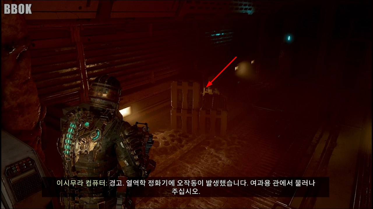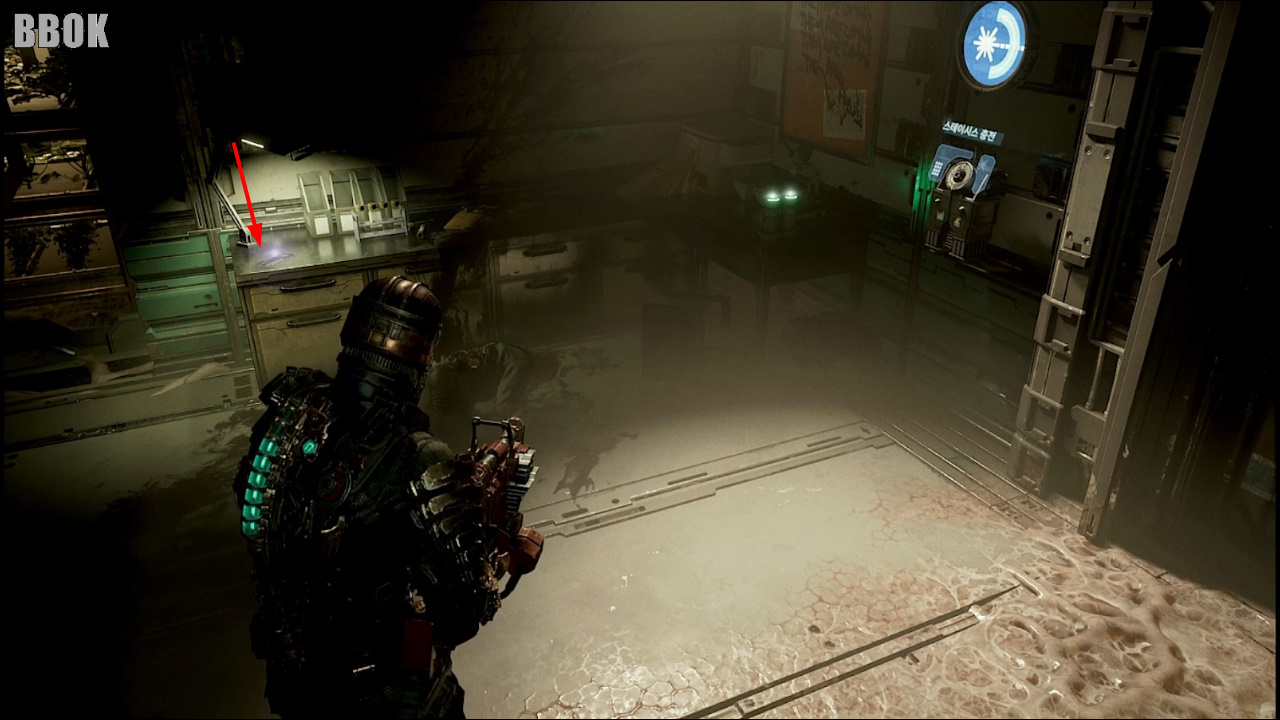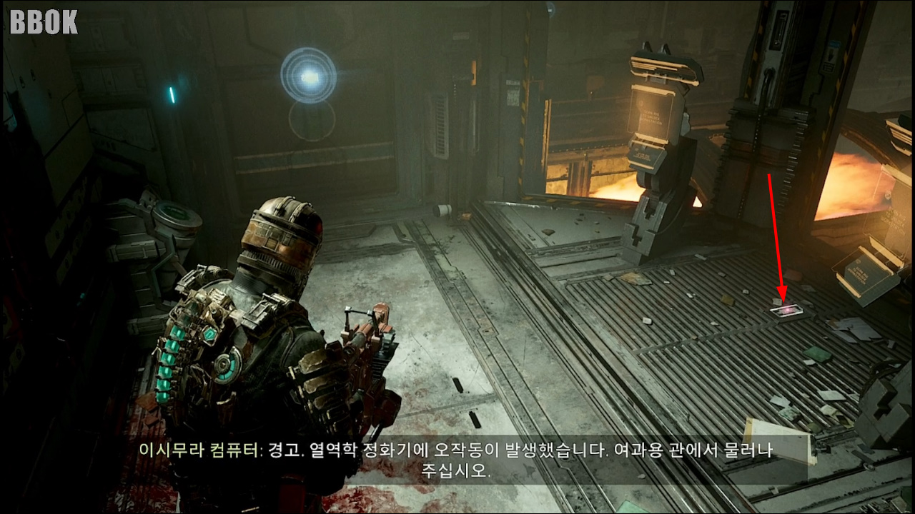 나가는 길에 화살표에 "갑판 시스템 키 카드" 아이템이 있고 충전기가 있습니다.